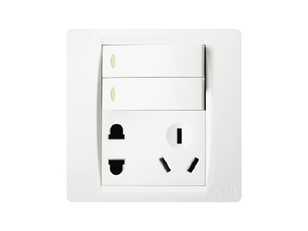 10A 250V ~ 扁圓二極扁三極插座帶二位單控開關