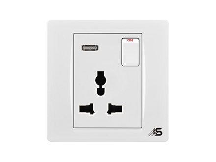 Universal 3 pin 1way switched socket outlet with neon