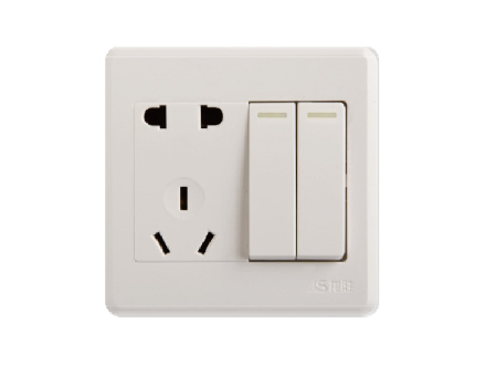 10A 250V ~ 扁圓二極扁三級插座帶二位雙控開關(guān)